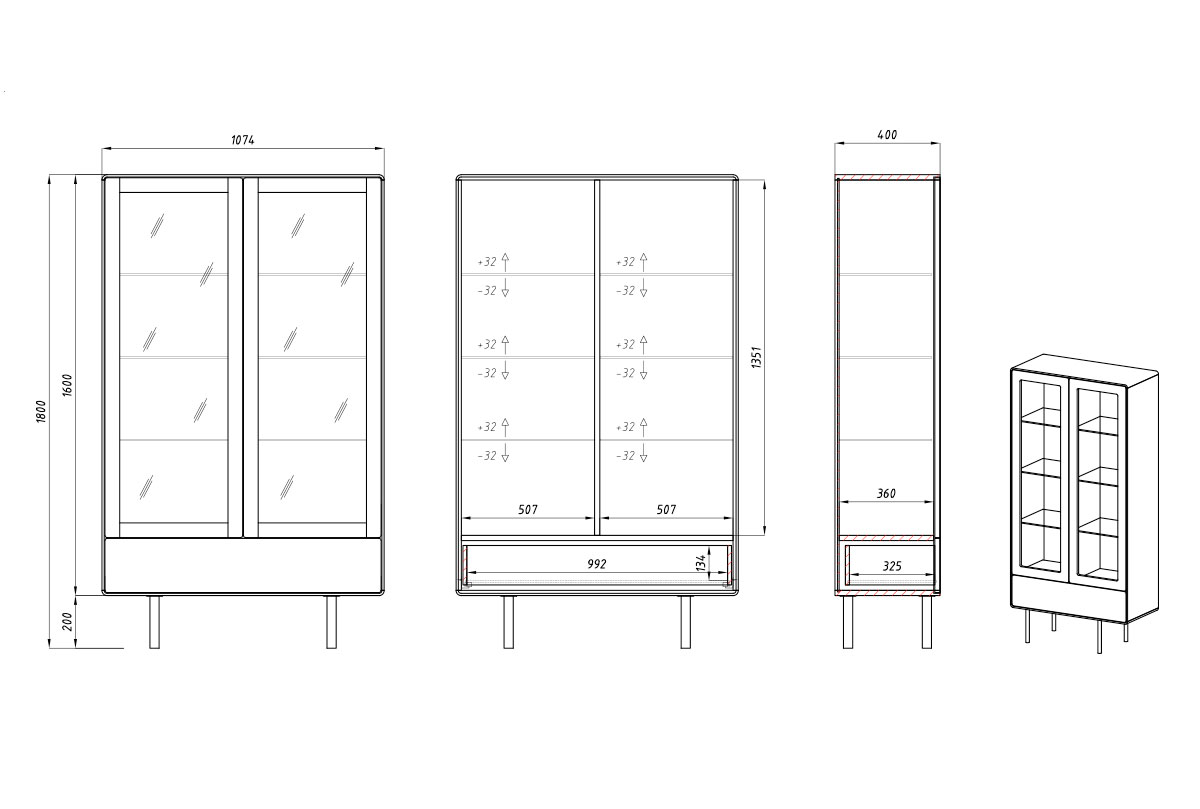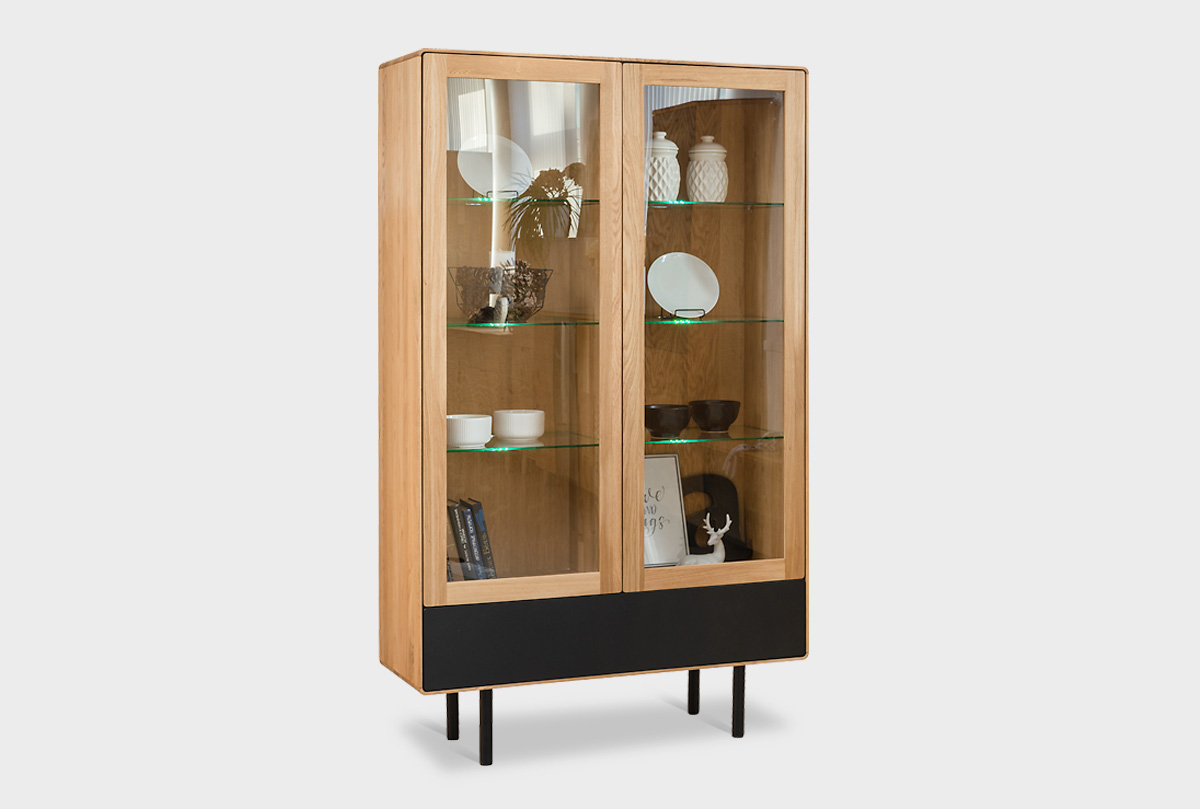 Витрина 2-х дверная "Норман", дуб натуральный, чёрный, 1 ящик, (.Г000073646)