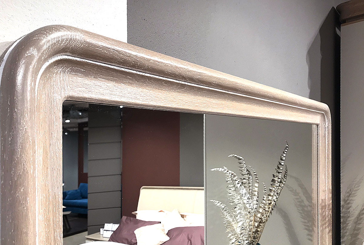 Лаконичное зеркало «Алекса» в цвете "айвори+жемчужный дуб, золотая патина" выполненное из массива и шпона дуба, в цвете жемчужный дуб станет отличным дополнением любой спальни или гостиной. Закругленные края и плавные формы зеркала поддерживают единую стилевую концепцию современной коллекции «Алекса». Это позволит вам создать единый интерьер и привнесет в любое помещение нужный акцент.