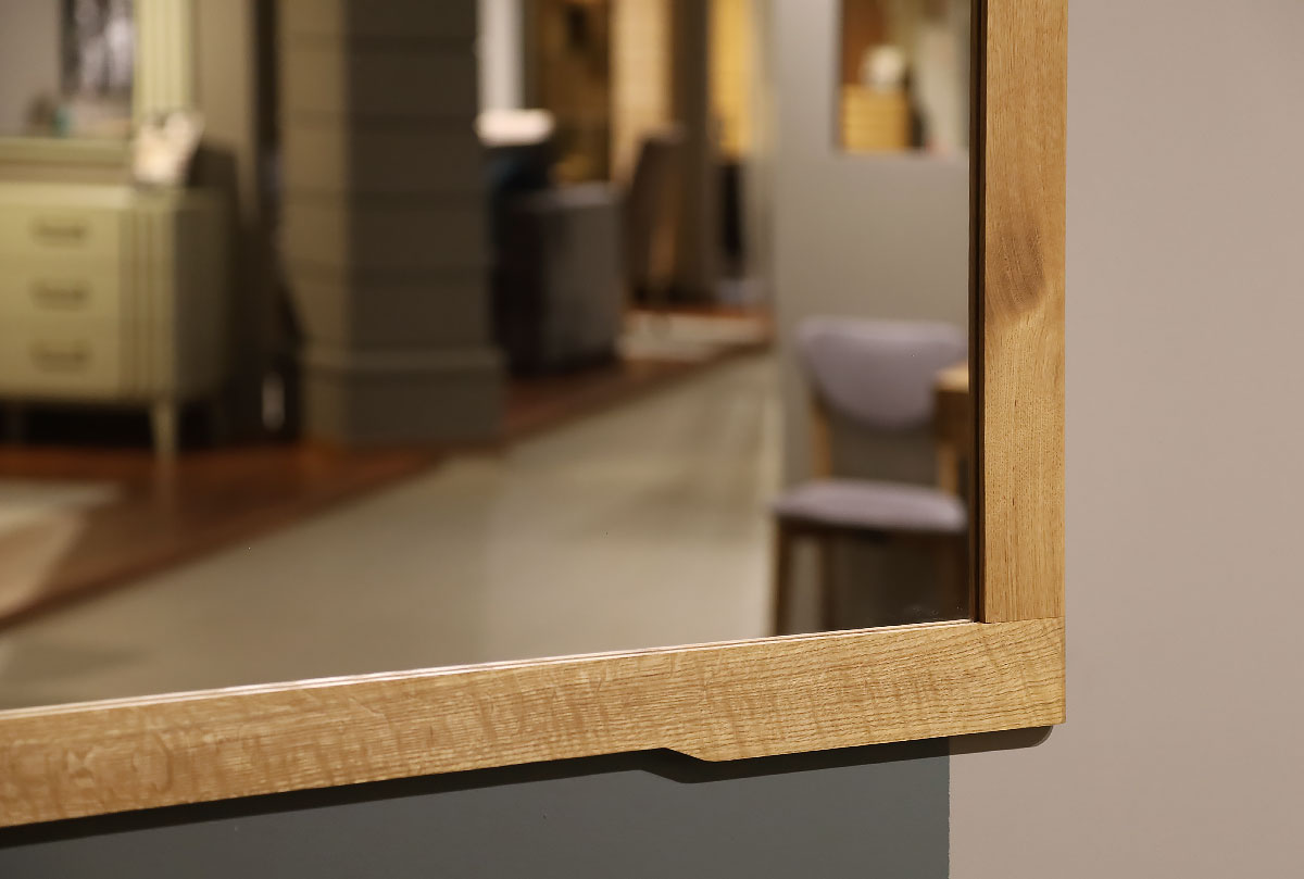 Зеркало прямоугольное Элва в цвете «бейц-масло» из массива и шпон дуба для Вашей спальни в стиле Лофт. Зеркало выполнено в цвете бейц-масло.
