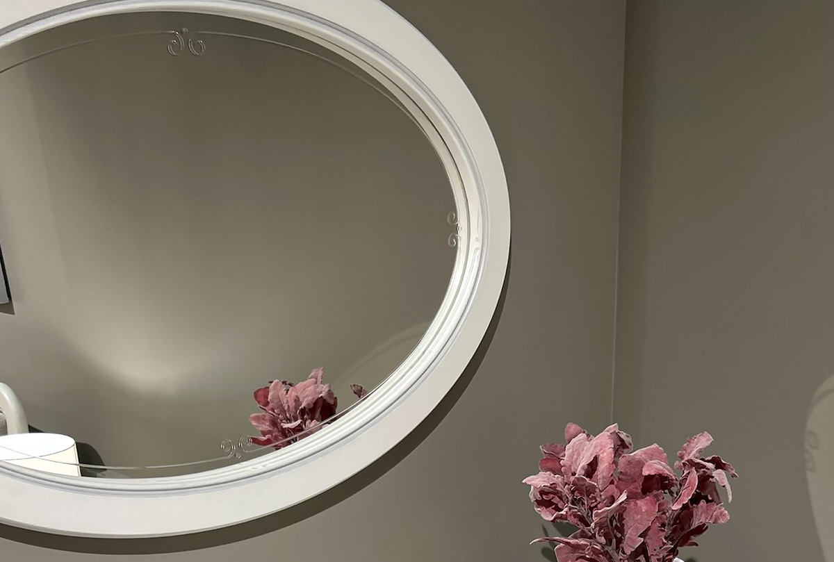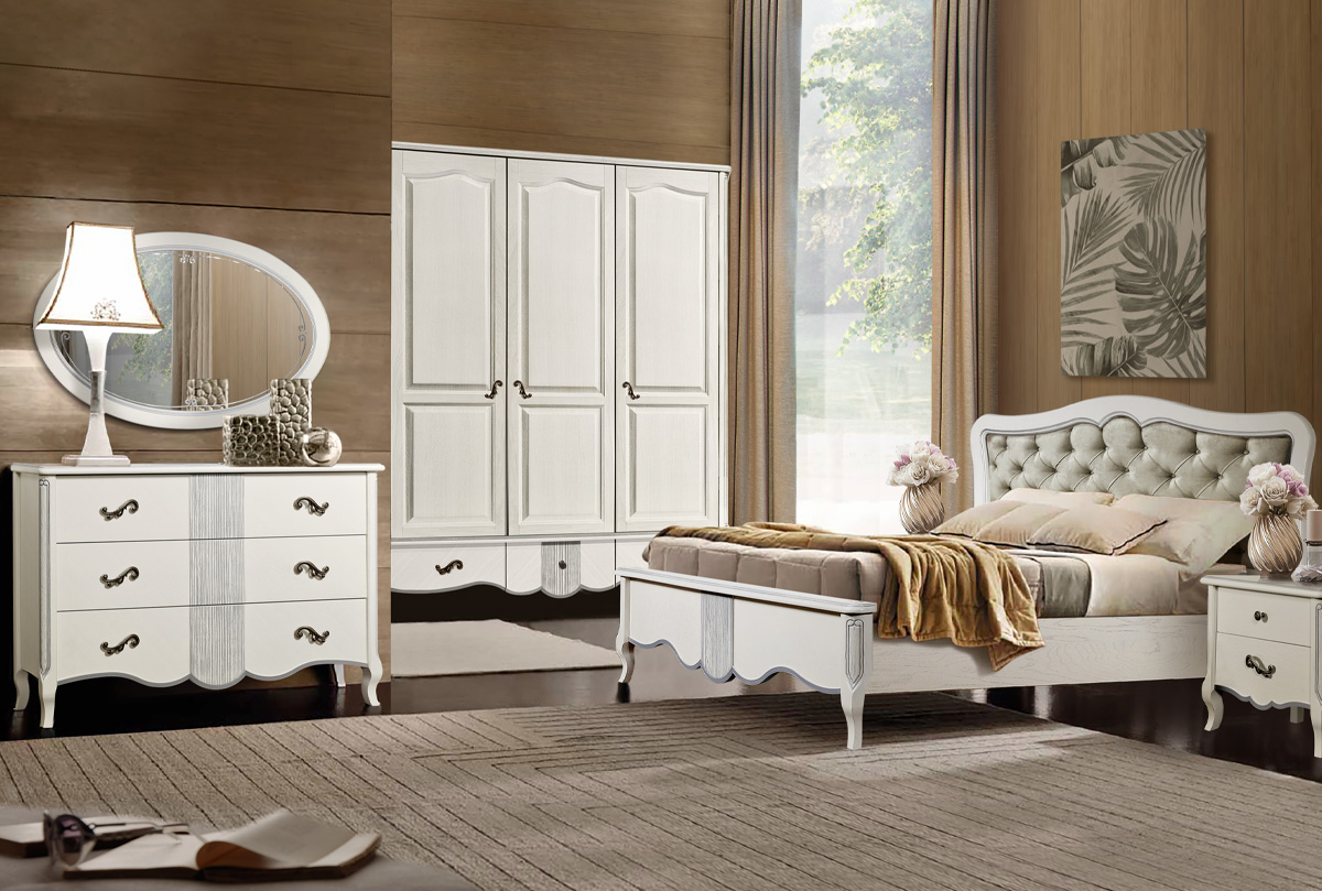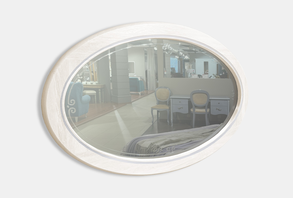 Оригинальное зеркало «Катрин» овальной формы в массивной раме прекрасно дополнит Вашу спальню, оно может стать как отдельной частью Вашего интерьера, так и дополнением к комоду. Форма зеркала перекликается с формой зеркала установленного на дверце шкафа, что позволит Вам создать единый гармоничный облик пространства в Вашей спальне.