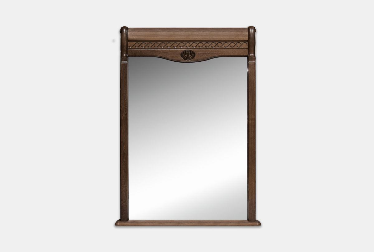 Зеркало из коллекции «Лика» в обрамлении массива дуба – это один из важных элементов дизайна, который будет уместен в любой спальне. Массив дерева тонирован в классический оттенок «табак с тёмной патиной». Конструкция изделия прочная и надёжная, а изящная резьба, которой украшена рама, превращает зеркало в незабываемое творение.