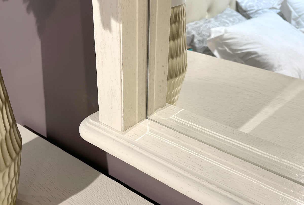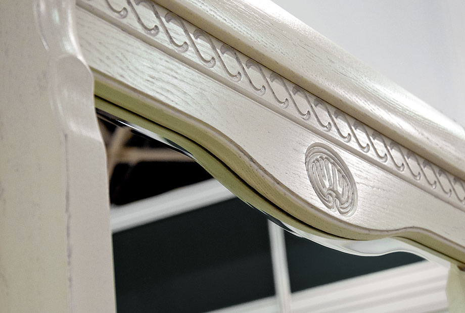 Зеркало из коллекции «Лика» в обрамлении массива дуба – это один из важных элементов дизайна, который будет уместен в любой спальне. Массив дерева тонирован в классический оттенок «белая эмаль». Конструкция изделия прочная и надёжная, а изящная резьба, которой украшена рама, превращает зеркало в незабываемое творение.
