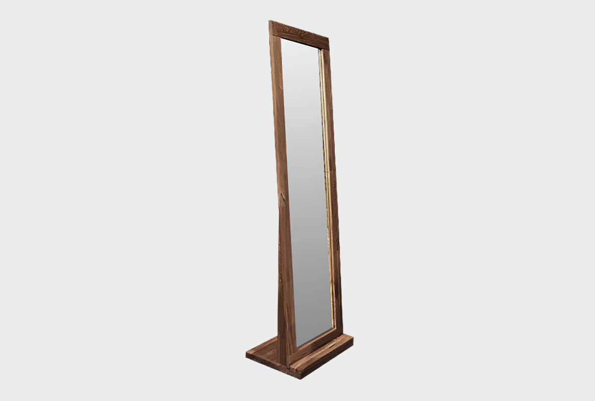 Напольное зеркало «Норд» в цвете «графит» из 100% массива дуба. Благодаря нарочито не подобранным брускам зеркало выглядит особенно оригинально.