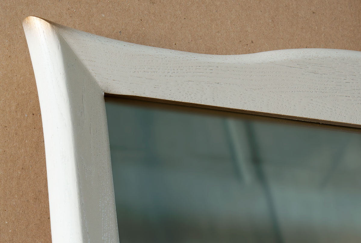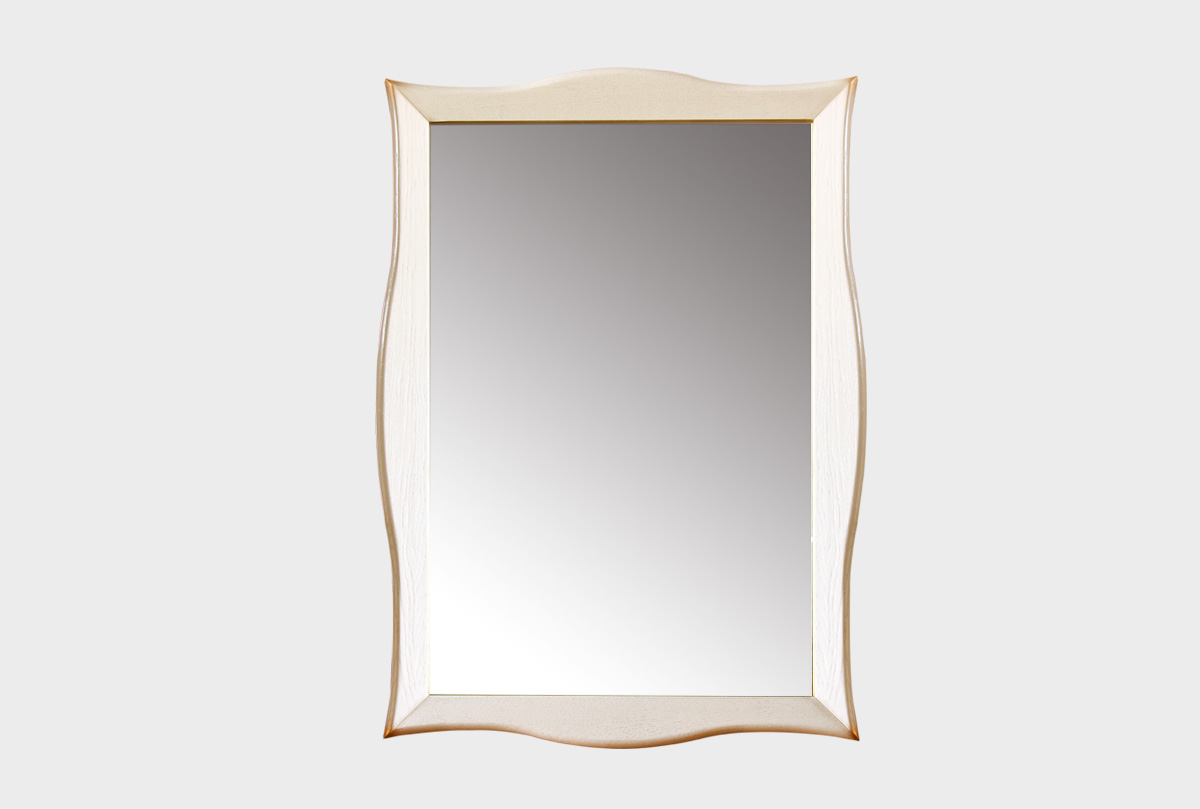 Элегантное зеркало из коллекции «Трио» в цвете «белая эмаль с золотой патиной» украсит любую спальню: изящно изогнутая рама, изготовленная из массива дуба, ее универсальный цвет и форма понравятся всем без исключения. Благодаря этим составляющим зеркало Trio легко впишется в интерьер в классическом стиле и прекрасно дополнит комод из коллекции «Трио».