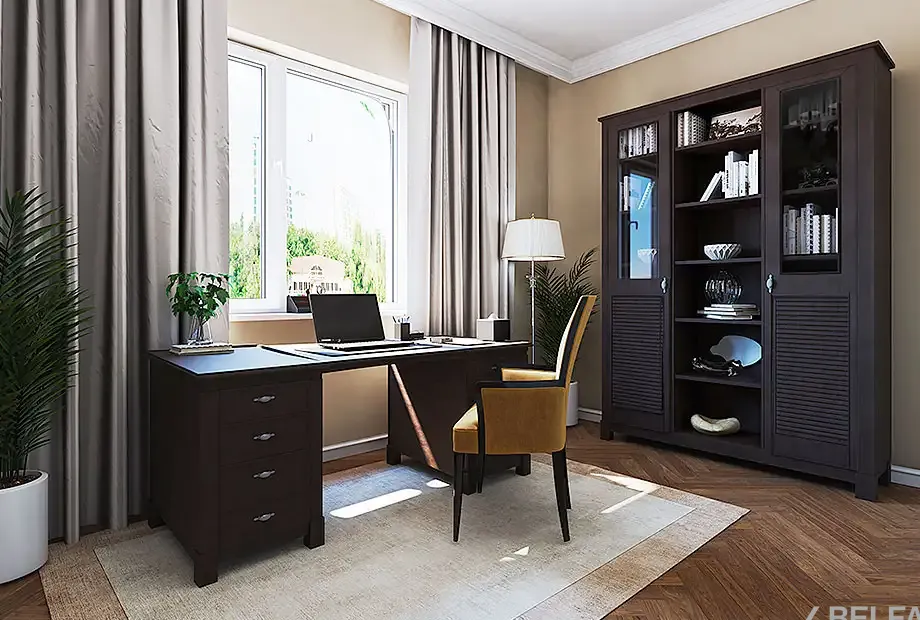 Кабинет "Рауна" №1 со столом письменным из массива сосны, с двумя тумбами и ящиками прекрасно подойдет для вашего рабочего пространства.