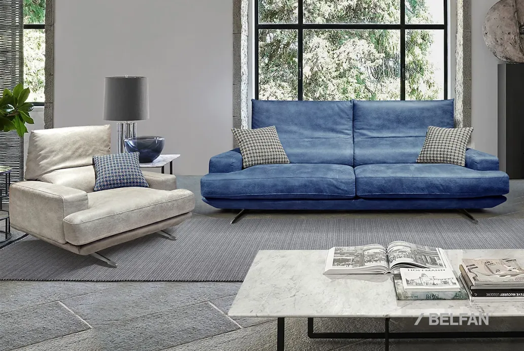Диван и кресло «Капристо», вариант 1 в интерьере гостиной в стиле Лофт уютного и современного дизайна