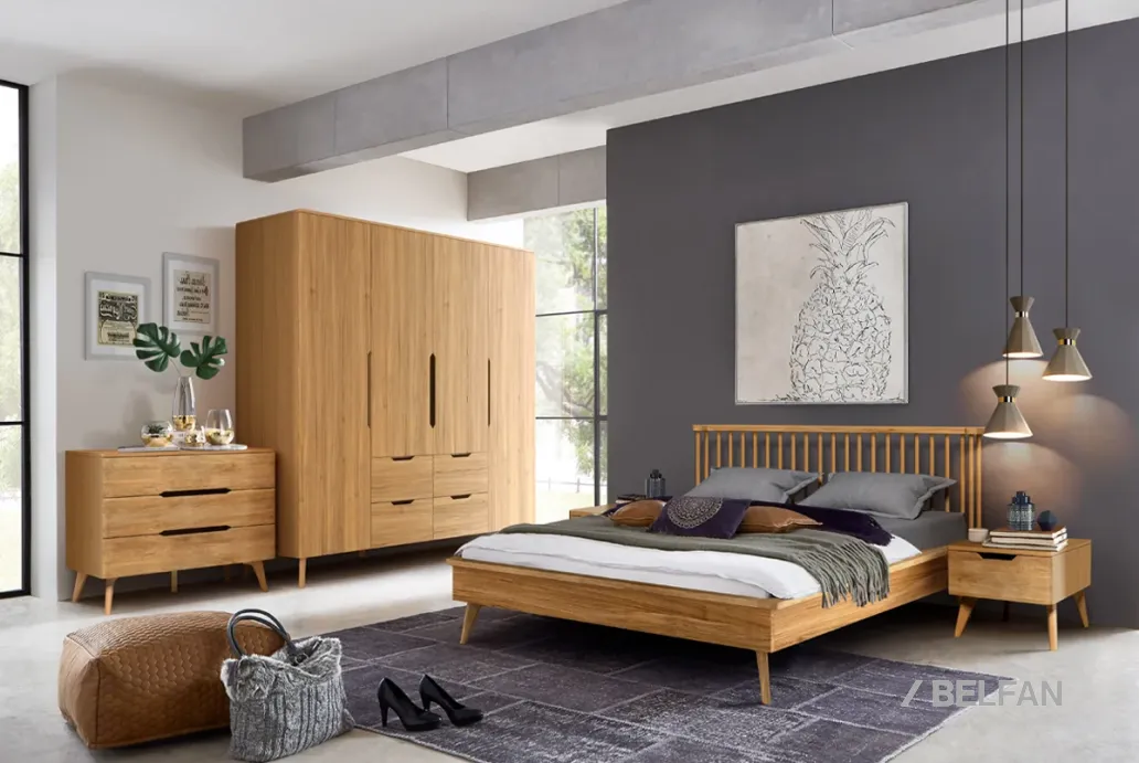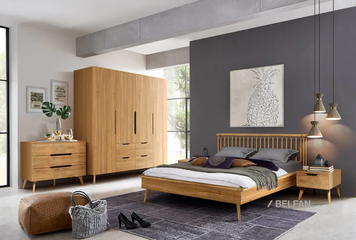 Спальня ELVA #4 - оригинальная мебель для спальни в стиле Лофт из натурального дерева: Кровать двухспальная с прикроватными тумбами, Шкаф -х дверный и комод.